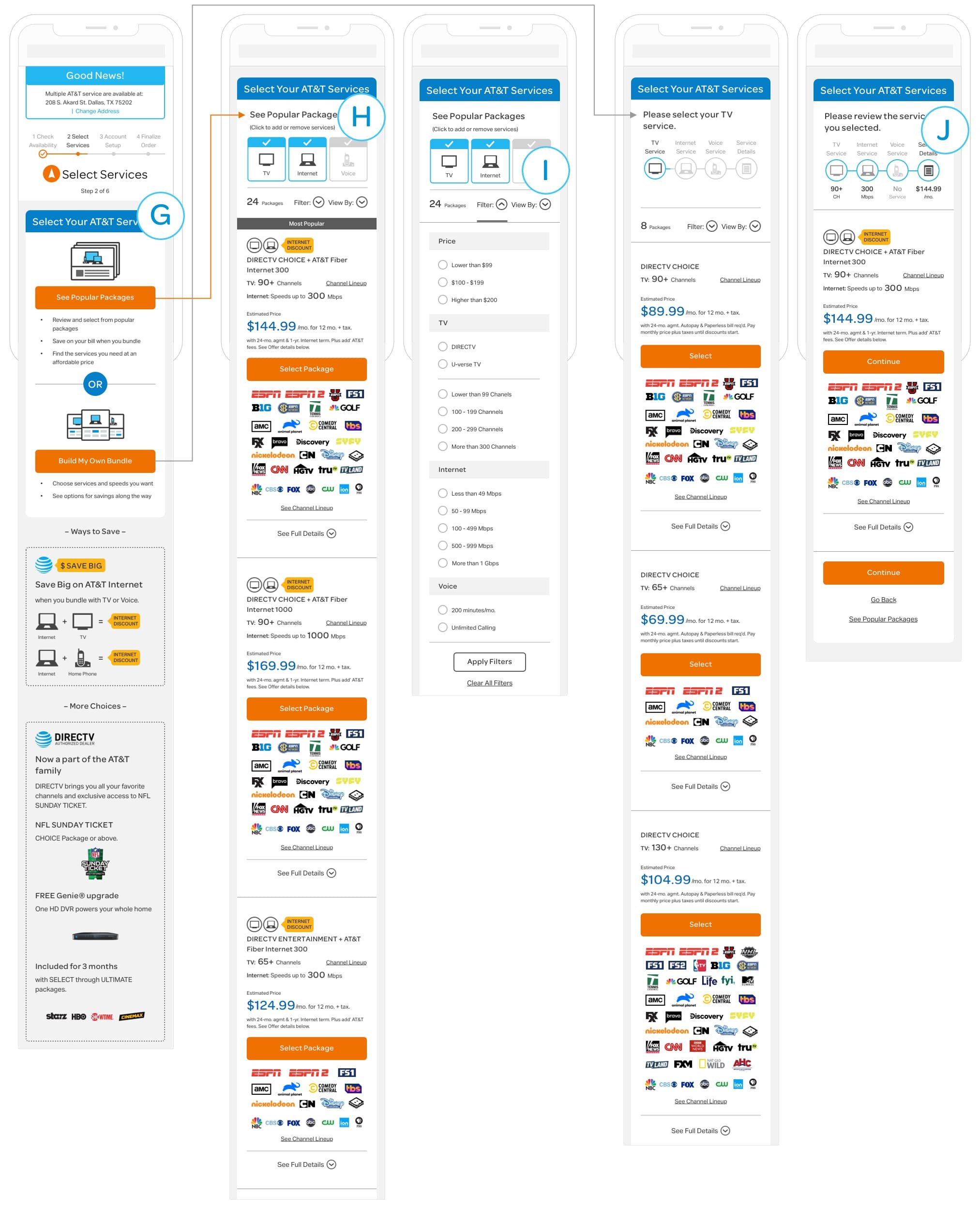 (G) In the original version, the main path is to guide users to a list of popular plans. But, there is a "Build my own" button on the side column as a secondary path that got many clicks. It could tell that some users may prefer to build their service plans flexibly. The redesign provides both the "See Popular Packages" and the "Build My Own Bundle" to see if users have a preference.